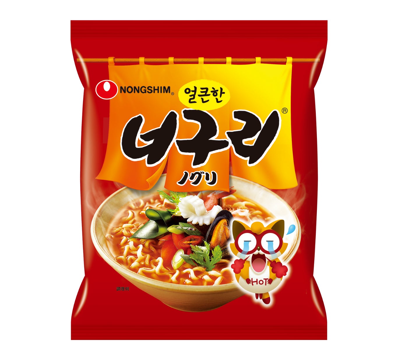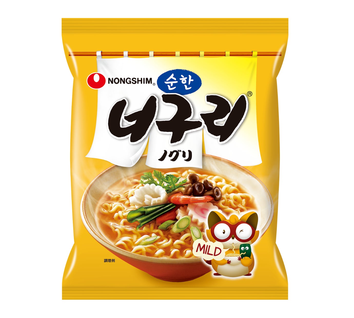 コシのある太麺で、もちもちとした食感とうどんのような食べ応えが特徴的な海鮮ベースのラーメン。「ノグリ」は韓国語で「たぬき」のことで、丸くて太い麺の形がたぬきを連想させるということで名付けられました。実は辛ラーメンよりも長い歴史を誇るロングセラー製品で、辛いながらもスッキリとした味の「ノグリラーメン(HOT)」や、辛さ抑えめの「ノグリラーメン(MILD)」をはじめとした複数のラインナップを展開。