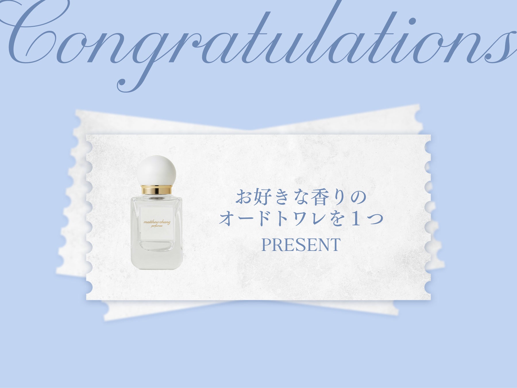 商品をご購入いただいたお客さま全員に、イベント限定のオードトワレ・ミニサンプルを1点プレゼントします。どの香りのオードトワレが当たるかお楽しみに!