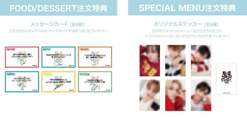 ■FOOD/DESSERT注文特典:CAFEでFOODまたはDESSERTメニューをご注文された方にご注文メンバーの「メッセージカード(全6種)」を1品につき1枚プレゼント。