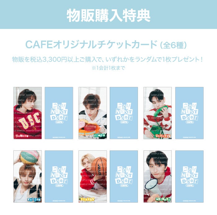 ■物販購入特典:1回の物販会計で税込3,300円以上ご購入いただいた方に「オリジナルチケットカード(ランダム6種)」を1枚プレゼント。※1会計1枚まで