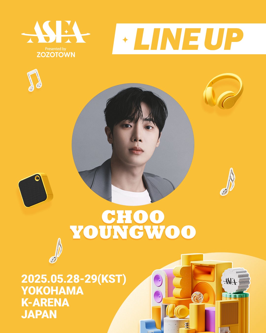 音楽とスター、そしてファンが一体となる、「ASIA STAR ENTERTAINER AWARDS 2025 in JAPAN Presented by ZOZOTOWN」(略称 ASEA 2025 Presented by ZOZOTOWN)が5月28日、29日に日本の横浜市にあるKアリーナ横浜で開催され、チュ・ヨンウの出演が決定したと、4月2日にASEA組織委員会が公式発表した。