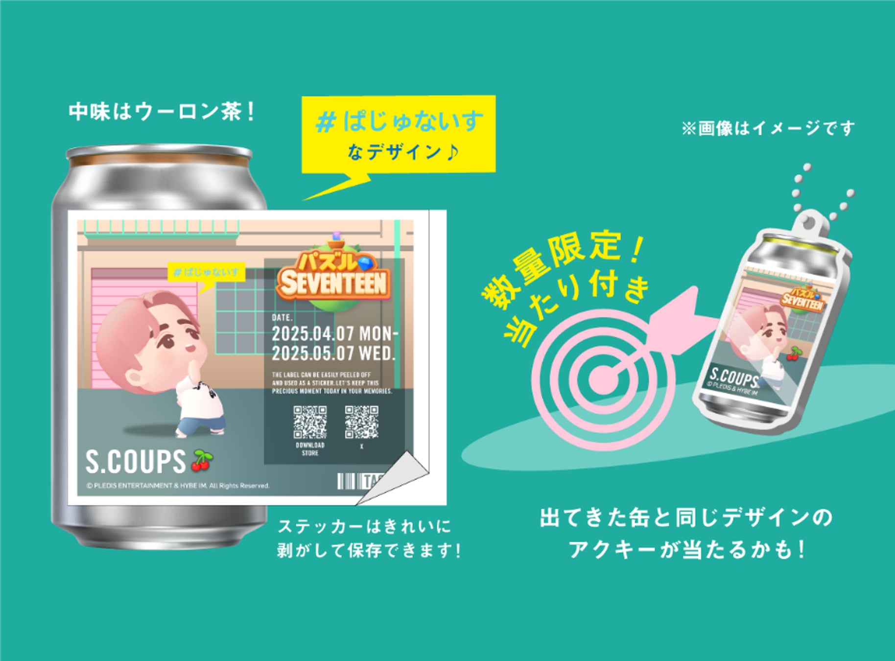 オリジナルラベル缶は、3月にSNSで公開されXでトレンド入りを果たすなど話題になった、パズルSEVENTEENキャラクターが踊る「VERY NICE」ポーズをモチーフにしたデザインとなっており、綺麗に剥がすとステッカーとしてもご利用いただけます。