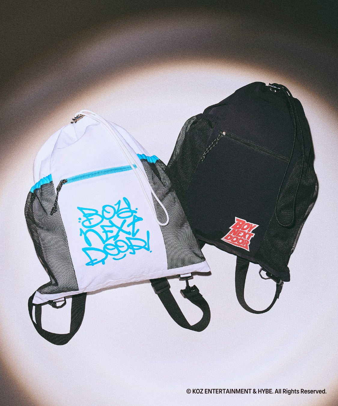夏オリジナルアイテムのために作成した、BOYNEXTDOORのオリジナルロゴを採用した夏らしいメッシュ素材のナンバリングノースリーブ、シンプルで使いやすいグラフィックTシャツ、デニムショーツの他、イベントやライブなどでも活躍するナップサックとリストバンドの全5型を展開致します。