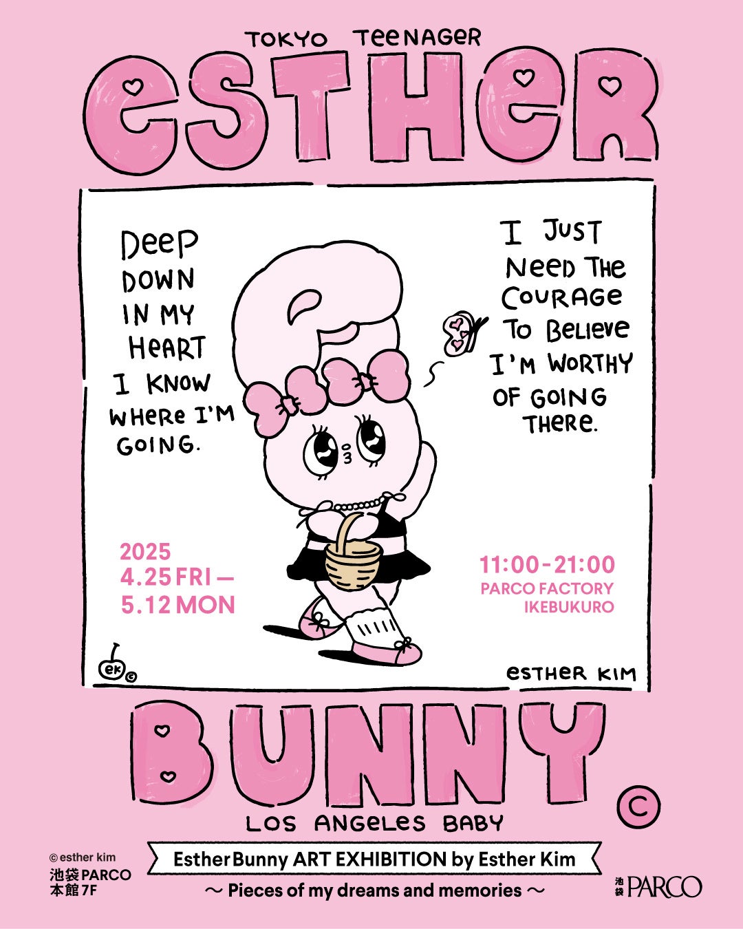 株式会社パルコ(は、2025年4月25日(金)から2025年5月12日(月)に池袋PARCO本館7FのPARCO FACTORYにて「EstherBunny ART EXHIBITION by Esther Kim~Pieces of my dreams and memories~」を開催、19点にのぼる描き下ろし作品を展示・販売いたします。