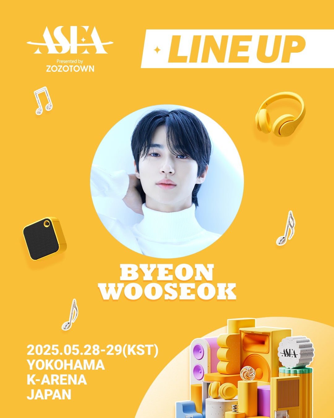 音楽とスター、そしてファンが一体となる、「ASIA STAR ENTERTAINER AWARDS 2025 in JAPAN Presented by ZOZOTOWN」(略称 ASEA 2025 Presented by ZOZOTOWN)が5月28日、29日に日本の横浜市にあるKアリーナ横浜で開催され、ビョン・ウソクの出演が決定したと、4月10日にASEA組織委員会が公式発表した。