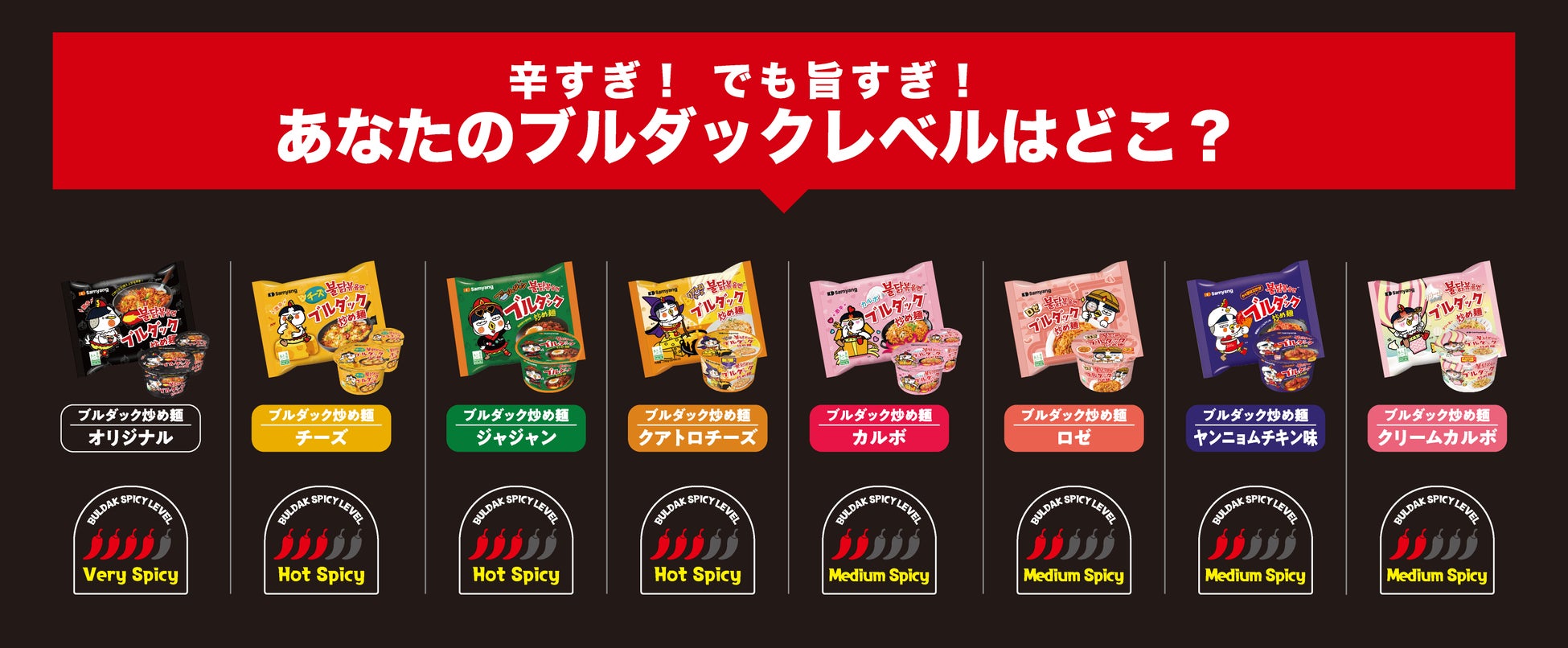 三養ジャパンが公開している、辛い順にブルダック炒め麺をご紹介!