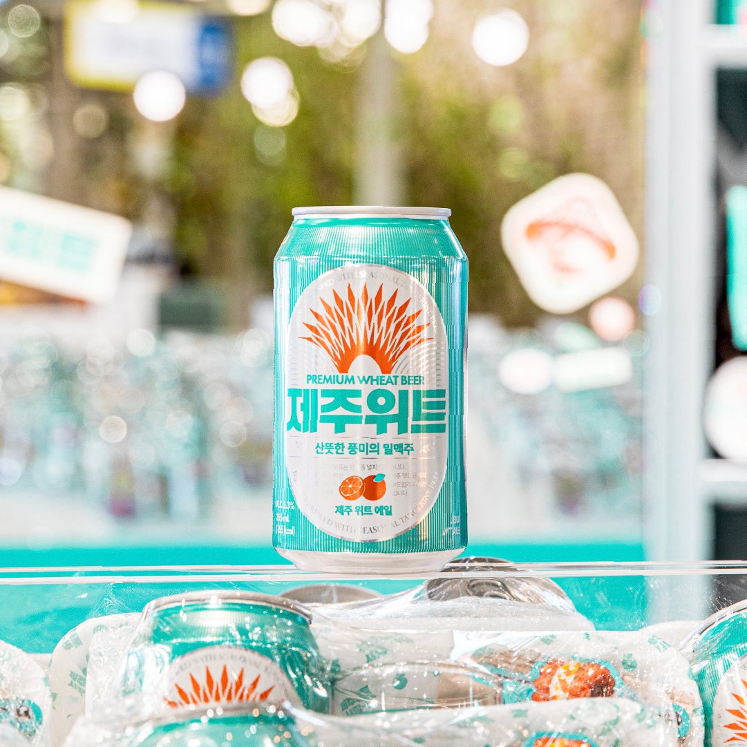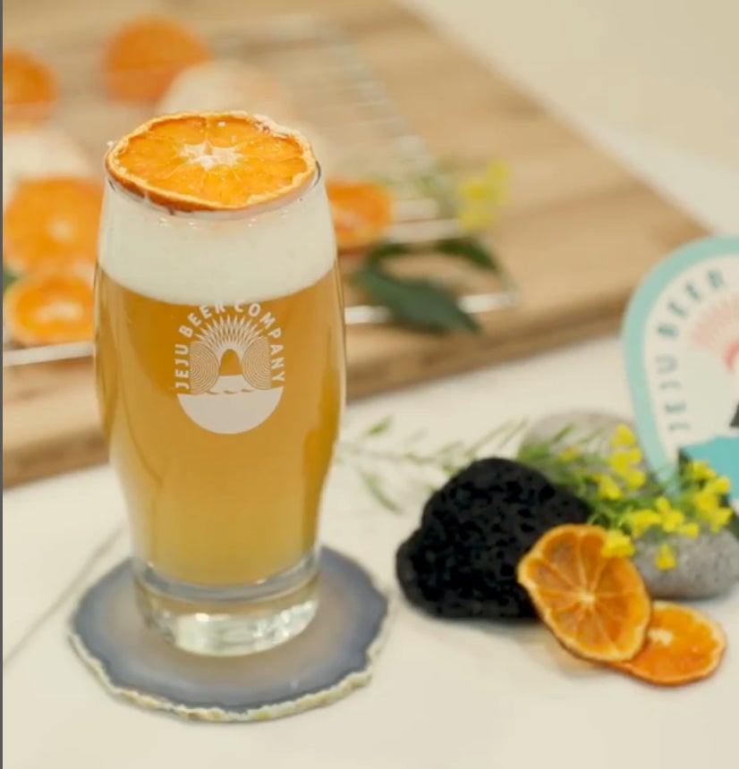 チェジュウィットエールは、2019年に発売初年度にして“3秒に1本”売れたビール。小麦と済州島産みかんの皮を使用したウィートエールで、ビール造りの要である水も済州島の地下水を活用しています。