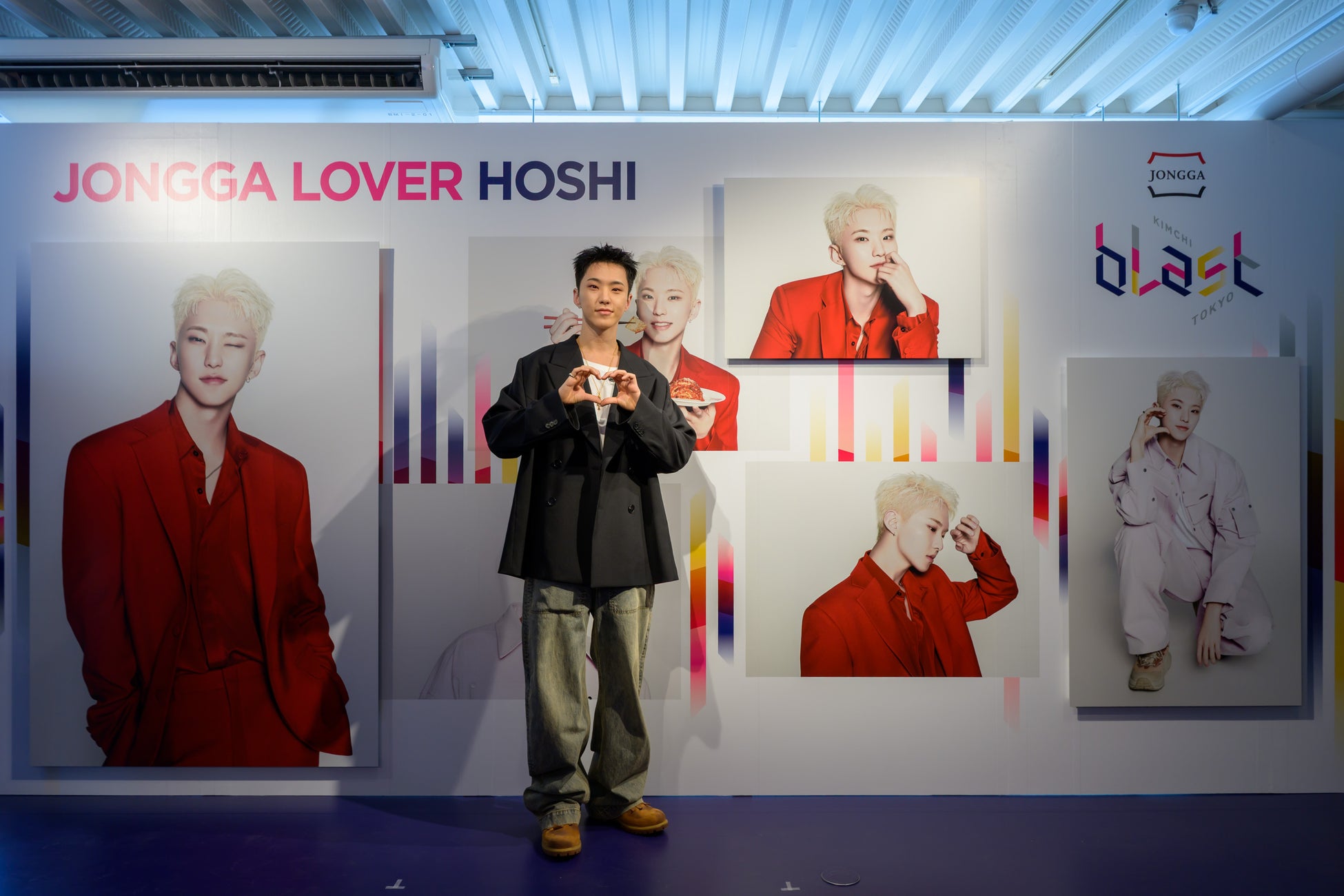 日本独自の展開となる漫画ゾーンでファンの皆様に是非召し上がって欲しいメニューは?という質問にHOSHIさんは「全て美味しそう!最近、あるYouTube番組でKimchi料理に挑戦したんですけど、料理が得意じゃない僕でもすごく美味しくできたんです(笑) Kimchiを使った料理って、Kimchi自体が美味しければどんな料理も美味しくなるんだなって実感しました。 」と笑顔で回答。『Kimchi Blast Tokyo 2025』のおすすめポイントを聞かれると「Kimchiの新しい魅力を感じてもらえたら嬉しい。GWに是非訪れて欲しいです! 」とアピール。今回のポップアップのノベルティである、各ゾーンでカードを集めると最後にHOSHIくんの顔が完成するレイヤードカードについては「僕もできれば時間を見つけてこっそり挑戦してみたいな。」とはにかみました。最後に「みなさま、JONGGA Kimchiをいっぱい愛してください。」とホシの決めポーズであるキュートなホランへポーズでJONGGA Kimchiの魅力を伝えました。