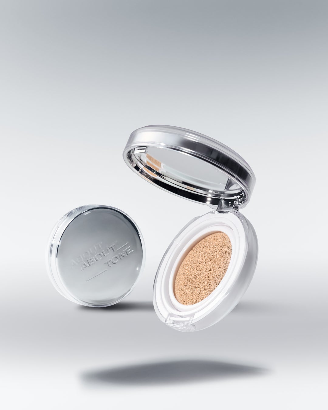 肌に軽く密着、くすみのない明るい肌の表現が長時間持続し、メイクしたてのビジュアルをそのまま維持してくれるクッション「ビジュ維持クッション」をアバウトトーンが密着にこだわって作りました。