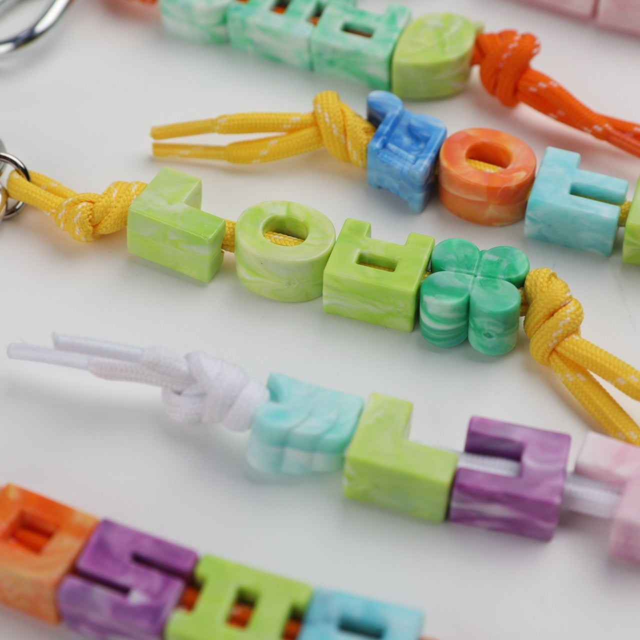ハングルの子音パーツを用いてオリジナルキーホルダーを作る体験。子音の組み合わせにより、自身や好きなK-POPのグループ・メンバーの名前など、様々な単語を作ることが可能。