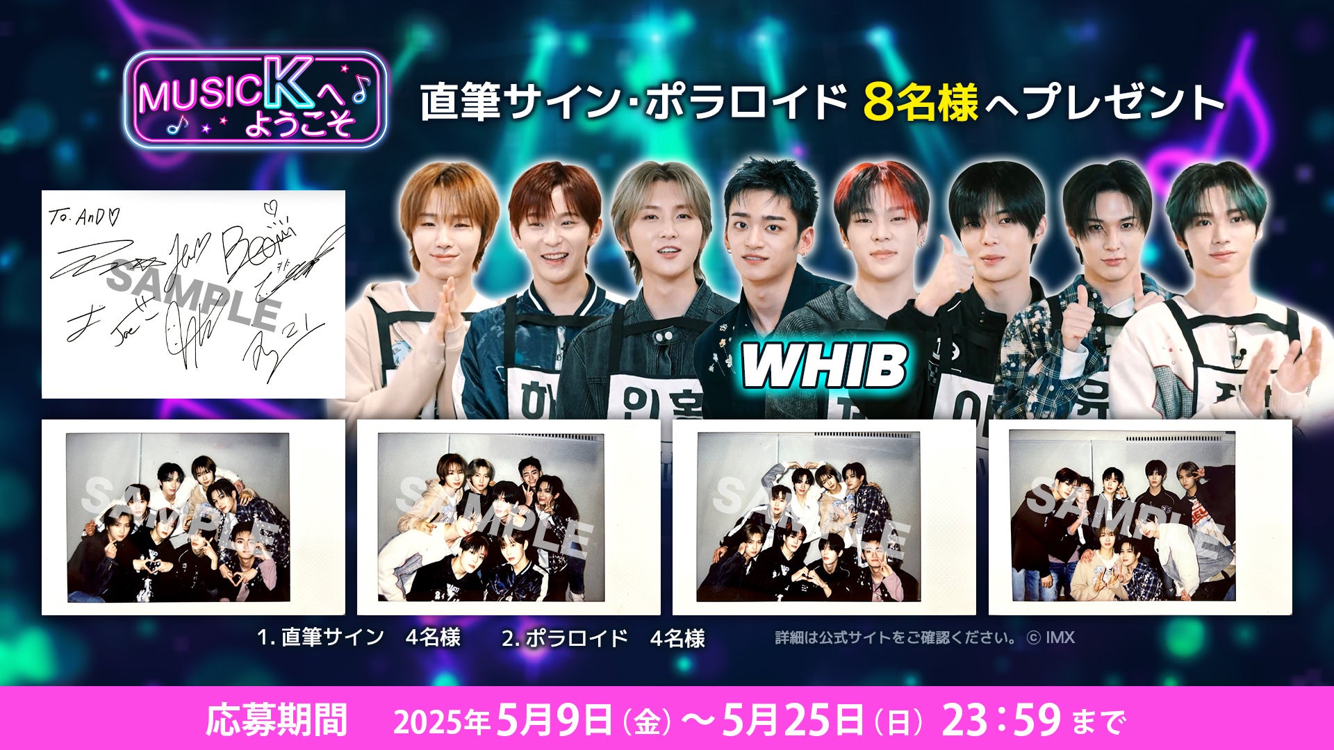 「Music Kへようこそ!」最新話更新を記念して、WHIBの直筆サインとポラロイドが抽選で8名様に当たる豪華プレゼント企画を本日18時より実施。Music Kの公式X、および公式サイトをご確認のうえ詳細をお待ちください。