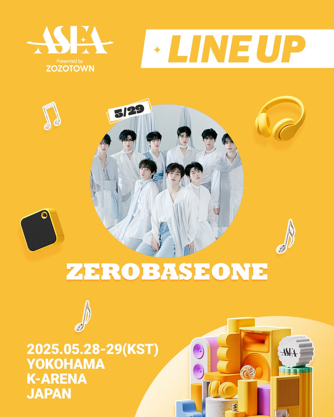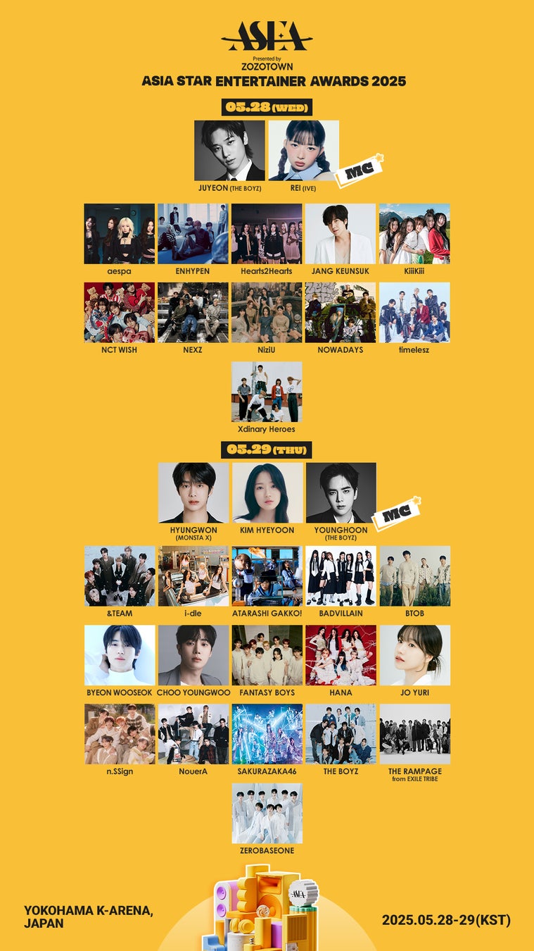 音楽とスター、そしてファンが一体となる、「ASIA STAR ENTERTAINER AWARDS 2025 in JAPAN Presented by ZOZOTOWN」(略称 ASEA 2025 Presented by ZOZOTOWN)が5月28日、29日に日本の横浜市にあるKアリーナ横浜で開催され、ZEROBASEONEの出演が決定したと、5月12日にASEA組織委員会が公式発表した。