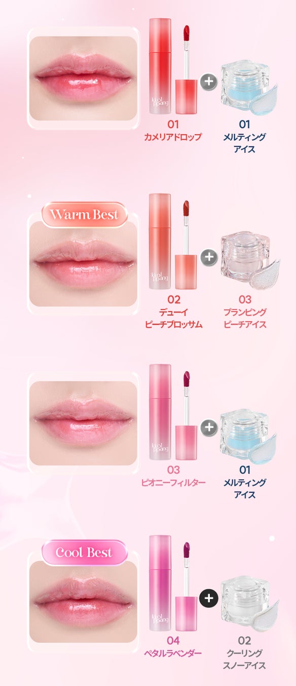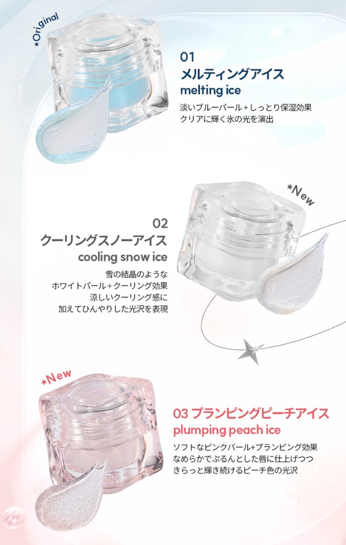 01 メルティングアイス、02 クーリングスノーアイス、03 プランピングピーチアイス