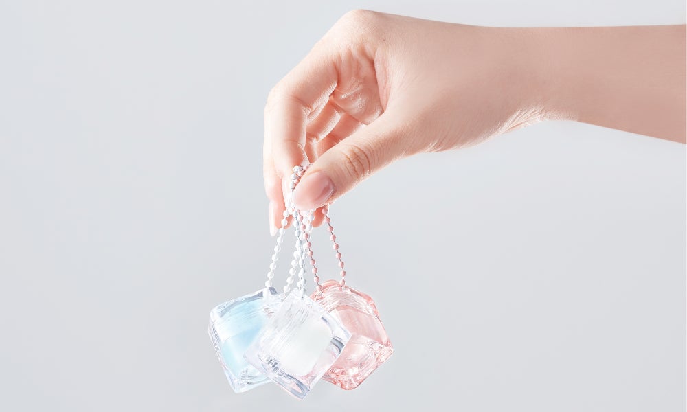 透明度の高いバームにそれぞれ微細パールを最適量含有し、唇の上で氷の光が輝きます。