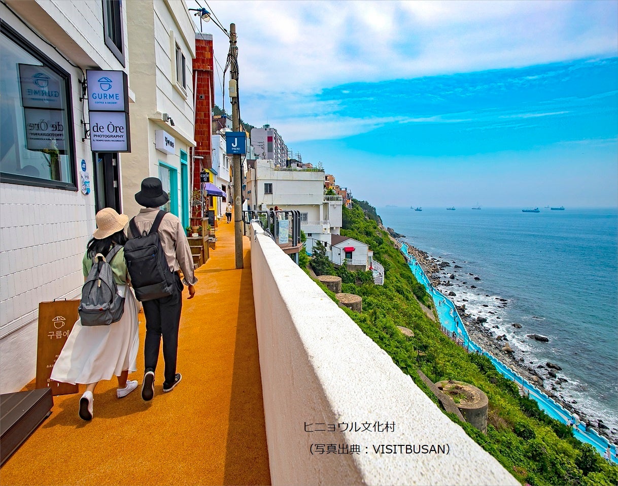 新名所〝ヒニョウル文化村・絶影海岸散策路"は影島の美しい錨泊地を見渡す傾斜地に、コミュニティの取り組みで芸術的な壁画が描かれるようになり、最近では村の生活と観光が共生する注目スポットとなり絶景カフェが何軒もできるようなところになりました!当ツアーでは混雑する前の涼しい時間帯に訪れます。