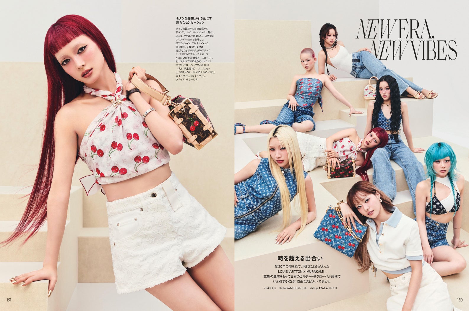中面では「ルイ・ヴィトン」のモノグラム柄と〈LOUIS VUITTON × MURAKAMI〉コレクションのチェリーモチーフを基調にした、クラシック&ポップなXGらしいスタイリングを全8ページで紹介します。