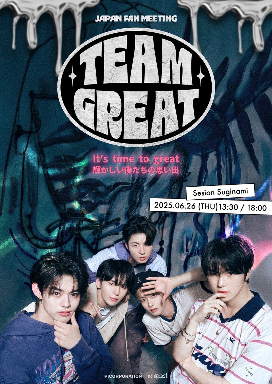 PICORPORATIONとクム・ジンホ、クォン・ヒジュン、キム・ジュヒョン、カイリ、チャン・ギョンホによる Team Great ファンミーティング『Team Great Fan Meeting It's time to great : 輝かしい僕たちの思い出』が6月26日 セシオン杉並にて開催することが決定した。
