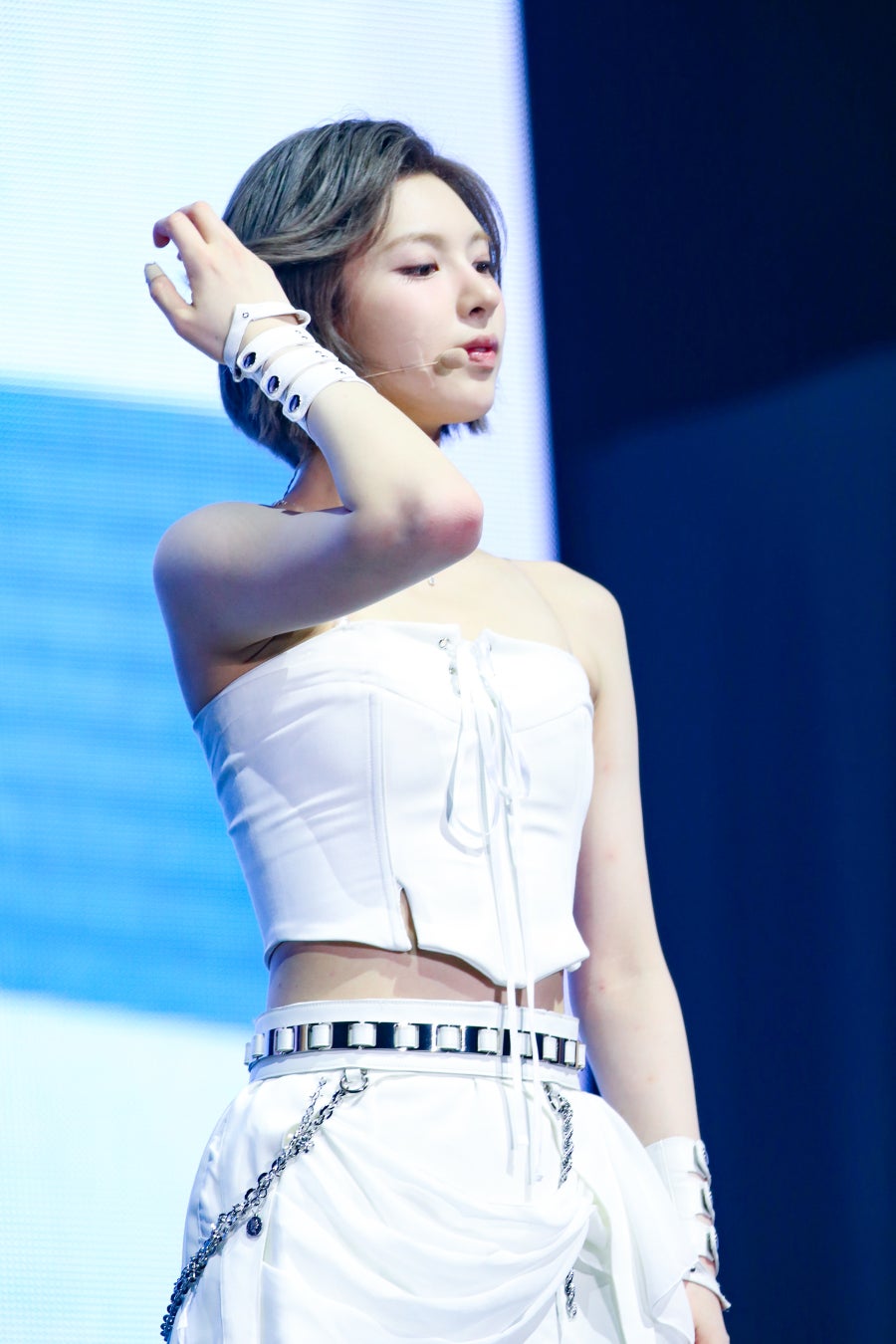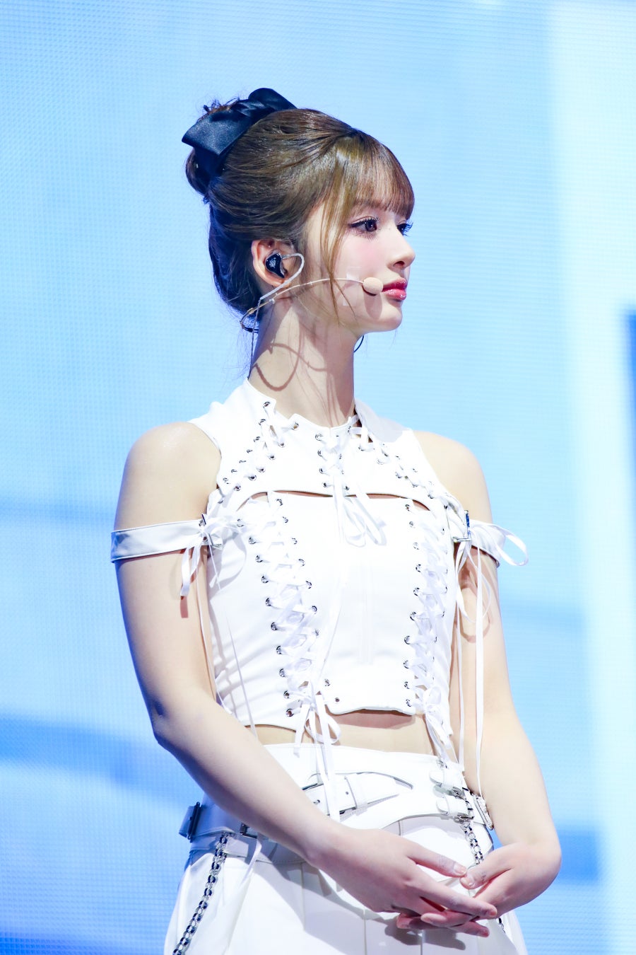 本公演は、前回の1月公演と同様〝化学実験〟をテーマにした〝MIXX LAB〟。実験をするメンバーを紹介するオープニングVTRに続き、メインステージから長く伸びた花道の先、センターステージに、脚線美が際立つ白いミニドレスを纏ったメンバーが登場。まさに白い天使や妖精を思わせ、客席からは「やばい」との声も。メンバー全員がセンター級のビジュアルを持ち、しかもK-POPガールグループ界でもトップクラス、この日のためにベストに体型管理されたルックスで心を奪った。
