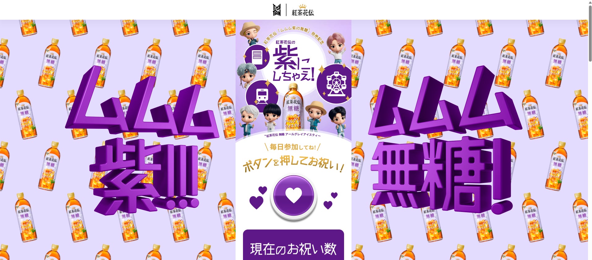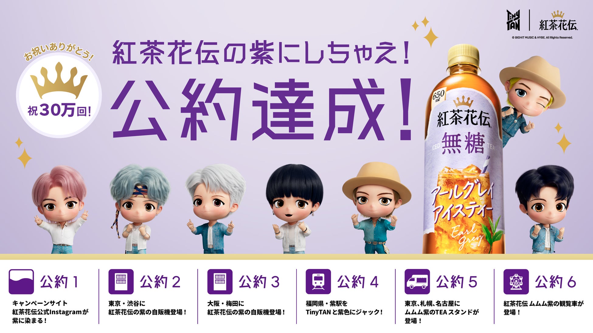「紅茶花伝」は、2025年3月10日(月)より“紫の無糖”として新登場した「紅茶花伝 無糖 アールグレイアイスティー」の発売を「TinyTAN」とお祝いする、「紅茶花伝の紫にしちゃえ!」キャンペーンを2025年4月7日(月)より開催。特設サイトから参加できるお祝い数に応じて、「紅茶花伝 無糖 アールグレイアイスティー」の製品カラーである紫に、キャンペーンサイトや日本の様々な場所をジャックしてまいりました。イベントにはこれまで延べ5,000人が参加。国内における無糖紅茶市場の伸長にも着目し、発売した「紅茶花伝 無糖 アールグレイアイスティー」は、本キャンペーンの反響も加わり、無糖紅茶市場の中でも飲用率の高い中高年層男性だけでなく、若年層や女性ユーザーからもご好評をいただいています。