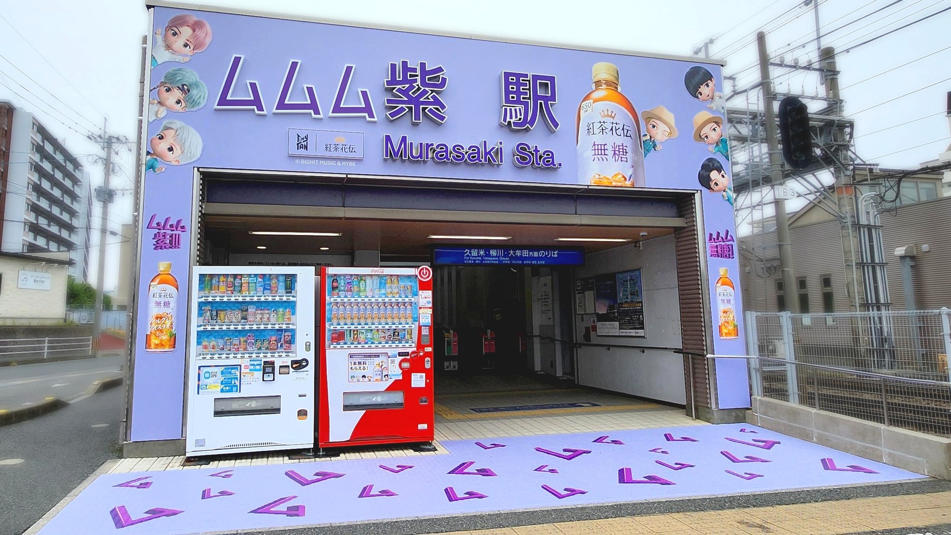 2025年6月2日(月)~6月8日(日)の期間、西日本鉄道(西鉄)天神大牟田線の福岡県「紫」駅を紫にジャックします。期間中、当駅にある特別ラッピング自動販売機を対象に、Coke ONで「紅茶花伝」を買うと、1本無料ドリンクチケットがもらえます。