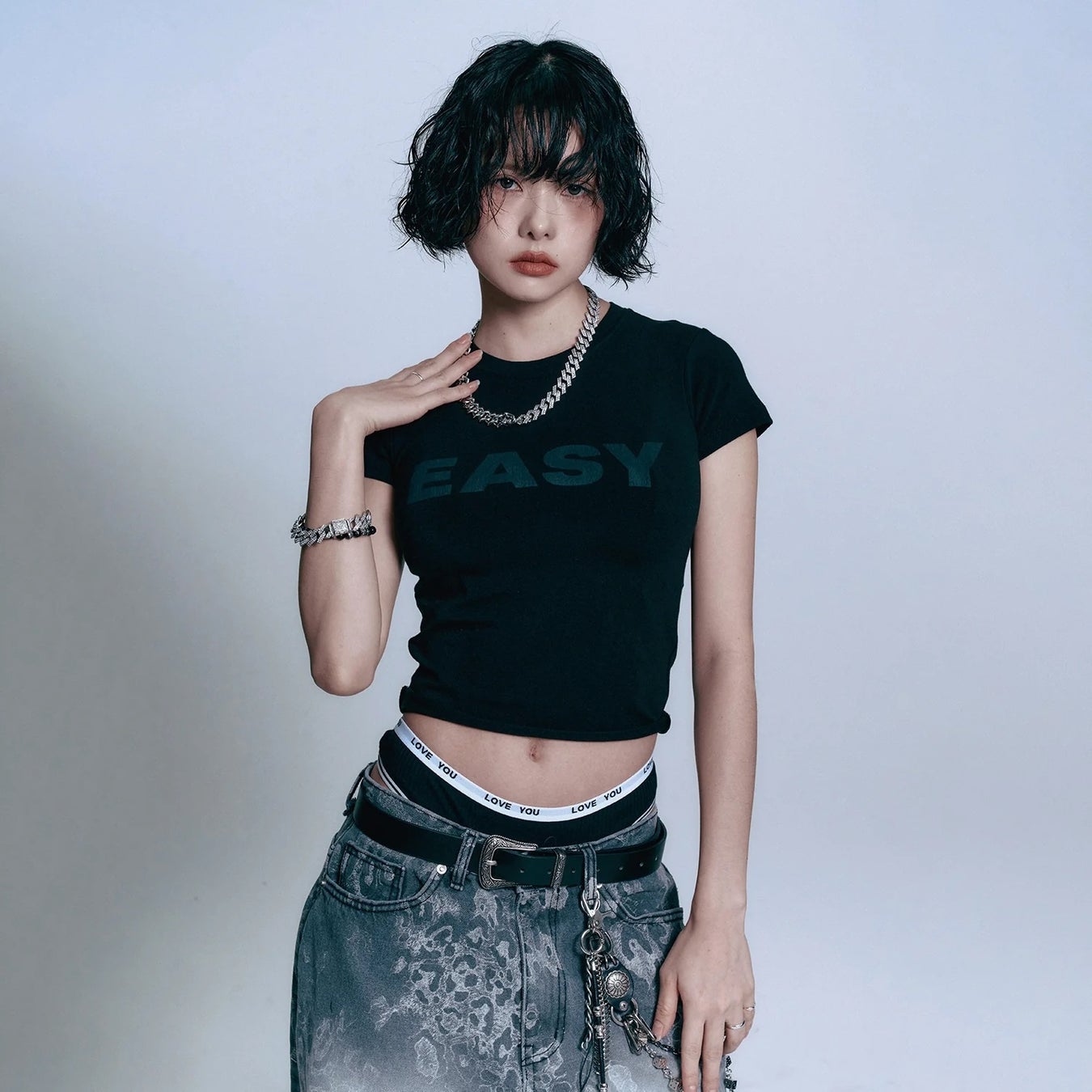 EASY NO EASY | イージーノーイージーは2025年に韓国で設立されたユニセックスストリートブランドです。「Simple is not easy」というスローガンのもと、日常的に着用できるベーシックなアイテムにブランド独自のトレンディーなデザインをプラスし、新しいイージーカジュアル文化を提案。