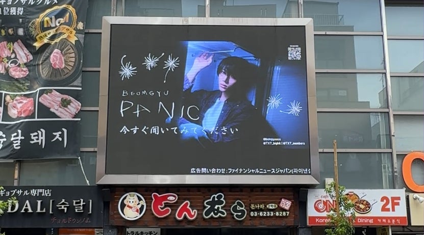 2025年5月19日(月)~5月25日(日)での期間で開催した「[K-STAR BOARD投票] 最高の「アイスクリーム・チャレンジ」のアイドルは?の投票において1位に選ばれたTOMORROW X TOGETHERのBEOMGYUさんの応援広告が、新大久保のK-PLAZA 1号館の屋外ビジョンで上映されております。