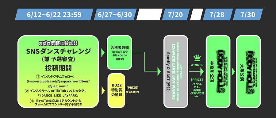 MORE VISION、J.E.T.主催、株式会社RaySTAが企画・制作に参画する、韓国HIPHOP界のレジェンド・JAY PARK(ジェイ・パーク)の6年ぶり単独来日公演「2025 Jay Park World Tour [Serenades & Body Rolls] In Japan」(7月28日・KT Zepp Yokohama、7月30日・Zepp Osaka Bayside)のフロントアクト出演権をかけたダンスコンテスト「DANCE LIKE JAY PARK」を開催することを発表いたしました。