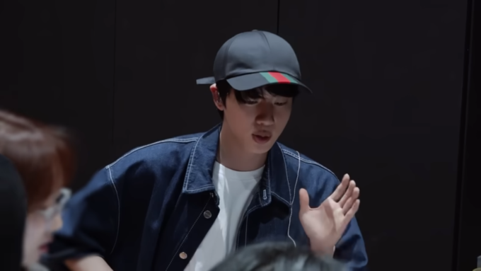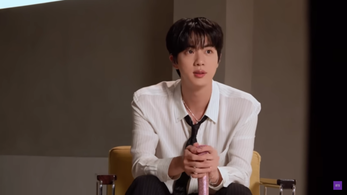動画でJINは、最初は練習室でリハーサルを行ったあと、スタジオでの収録に臨んだ。