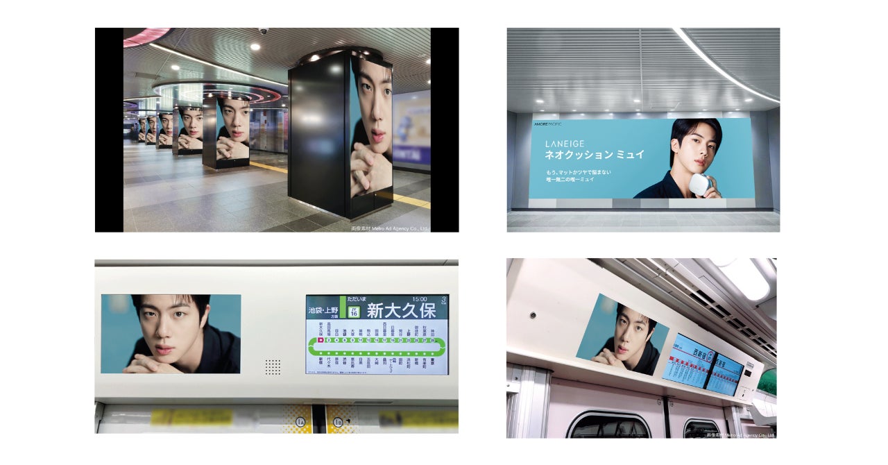 アモーレパシフィックジャパン株式会社(所在地:東京都渋谷区)が展開する韓国発のグローバルビューティーブランド「LANEIGE (ラネージュ)」は新作クッションファンデーション「ネオクッション ミュイ」の発売に伴いグローバルアンバサダーであるBTS JINを起用した広告を2025年6月23日(月)~6月29日(日)の期間で渋谷駅構内、JR東日本トレインチャンネル及び東京メトロ車内ビジョンにて掲出します。