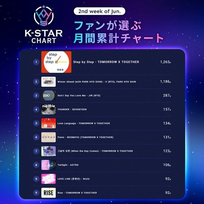 また、同日のチャート投票ではTOMORROW X TOGETHERの「Step by Step」が1位を獲得し、番組内で紹介されました。