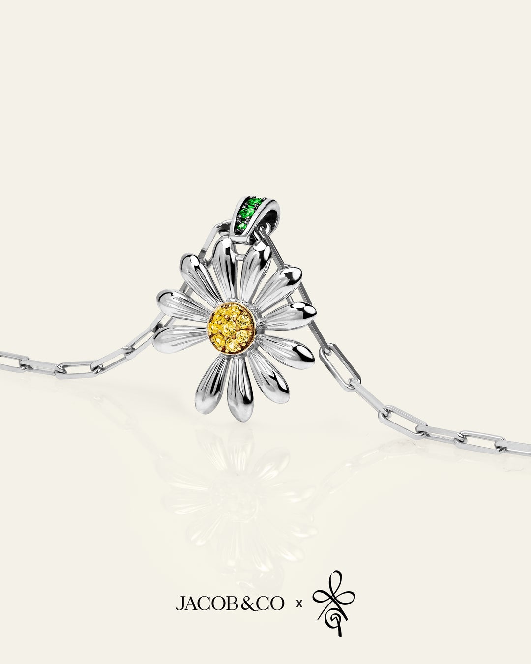 このペンダントは、G-DRAGONが掲げる哲学である“PEACEMINUSONE(ピースマイナスワン)”、『平和(PEACE)と反骨(MINUSONE)の共存する』という独自の世界観を、ラグジュアリーという形に昇華させた身に着けるアートです。象徴として選ばれたのは“デイジー”。それは、開花と進化を象徴し、G-DRAGON自身のクリエイティブな変遷を物語るモチーフです。
