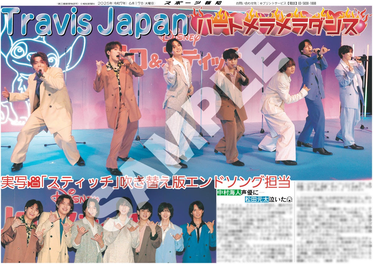 エンタメ部門では新たに目黒蓮のCM発表会の様子を伝える紙面が3パターン登場。また、K―POPバーチャルアイドル「PLAVE」の紙面(2パターン)やUVERworldに加え、Travis Japan(2パターン)と関西jr.の会見の紙面も追加。本田響矢、timelesz・橋本将生のインタビュー記事もコンビニプリントでご覧になれます。