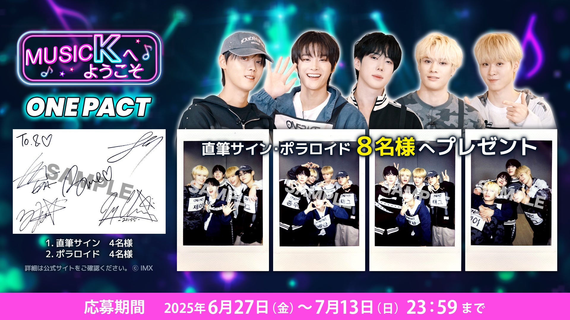「Music Kへようこそ!」最新話更新を記念して、ONE PACTの直筆サインとポラロイドが抽選で8名様に当たる豪華プレゼント企画を本日18時より実施。Music Kの公式X、および公式サイトをご確認のうえ詳細をお待ちください。