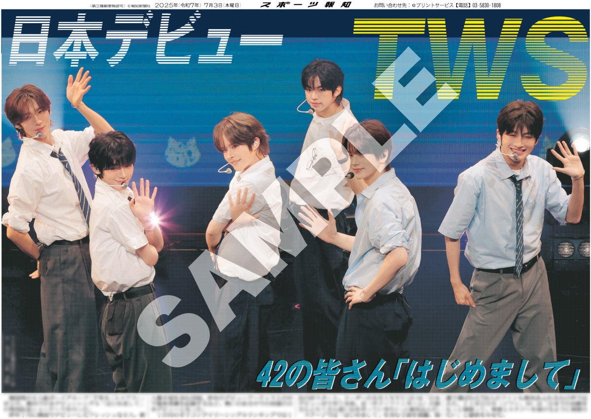 スポーツ報知を発行する報知新聞社(代表取締役社長・長谷川剛)は新聞の一部紙面をコンビニエンスストアのマルチコピー機からプリントできる「スポーツ報知コンビニプリント」サービスをスタート。スポーツ紙ならではの大きな写真を使った紙面をプリント版として販売しています。7月3日付芸能面から韓国の6人組ボーイズグループTWSの日本デビューシングル「はじめまして」の発売記念ショーケースの模様を販売中です。集合&ソロの計7種類です。