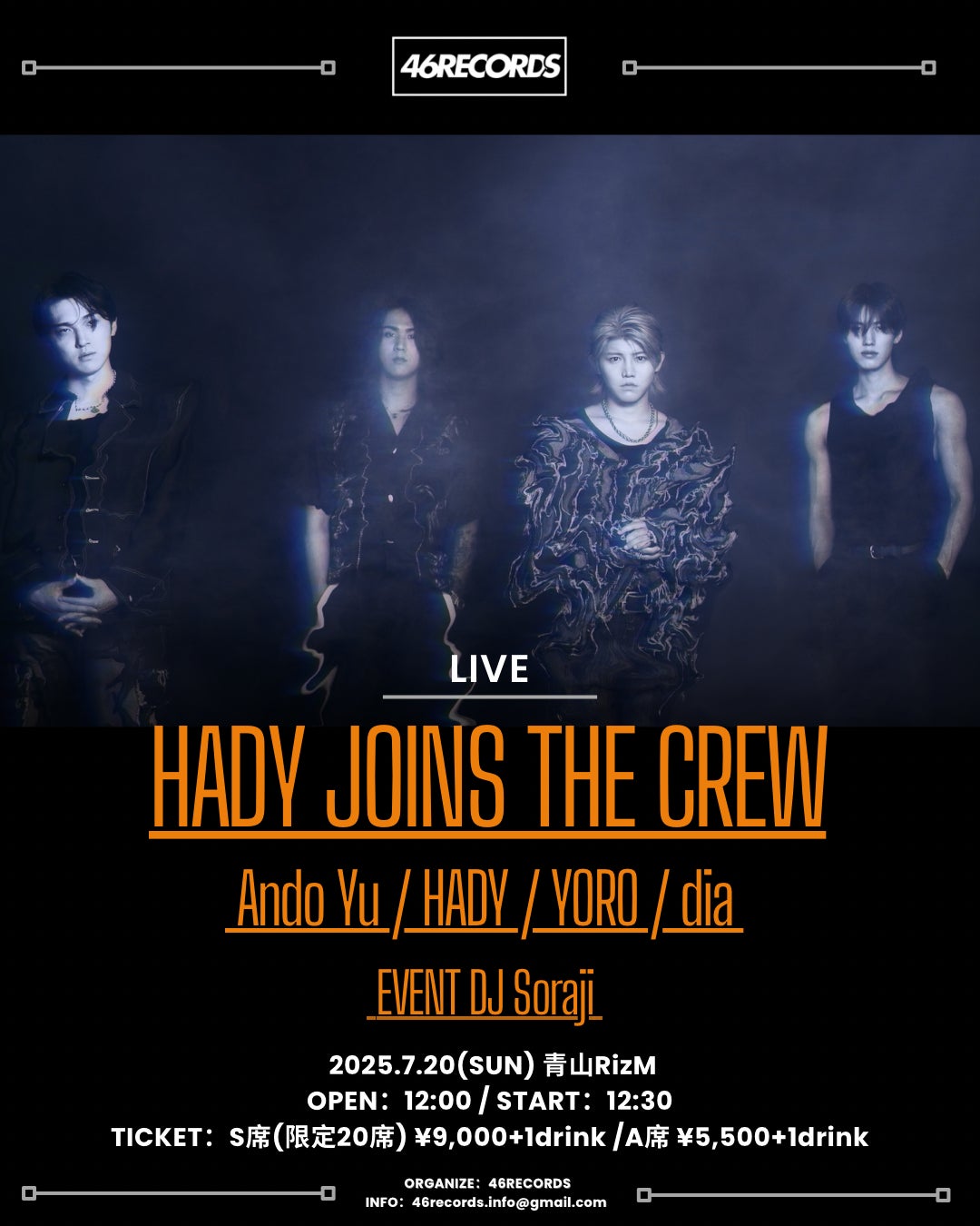 HADYの電撃加入を祝い、その新たなスタートをファンと共に分かち合うため、スペシャルイベント『HADY JOINS THE CREW』の開催が決定いたしました。