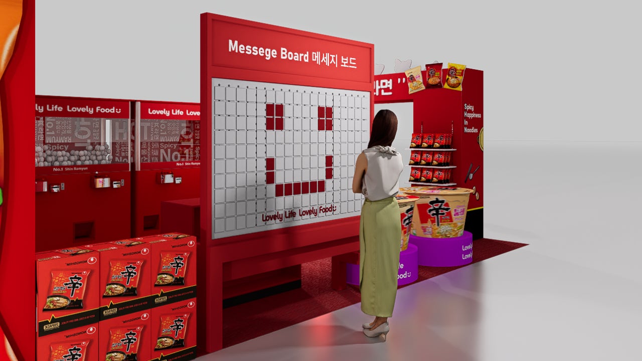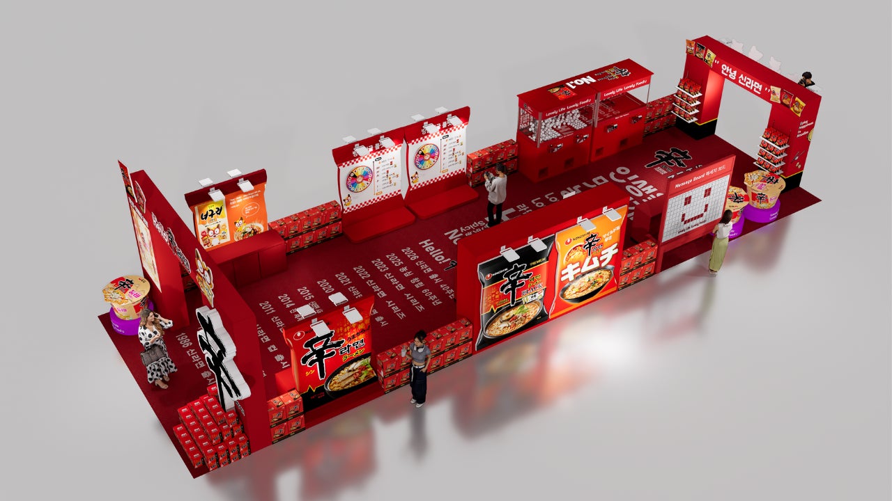 その名の通り、辛ラーメン感満載の真っ赤なブースデザインで、会場内では診断結果に応じて“マイ・ベスト・トッピングス・アイテム”がもらえる「辛ラーメンオリジナルMBTI(My Best Toppings Item)診断」や、気になる農心製品をGETできる「UFOキャッチャー」や「ルーレット」、「韓国語スピーキング体験」「ノグリ似顔絵体験」など、様々なゲームを無料でおたのしみいただけます。