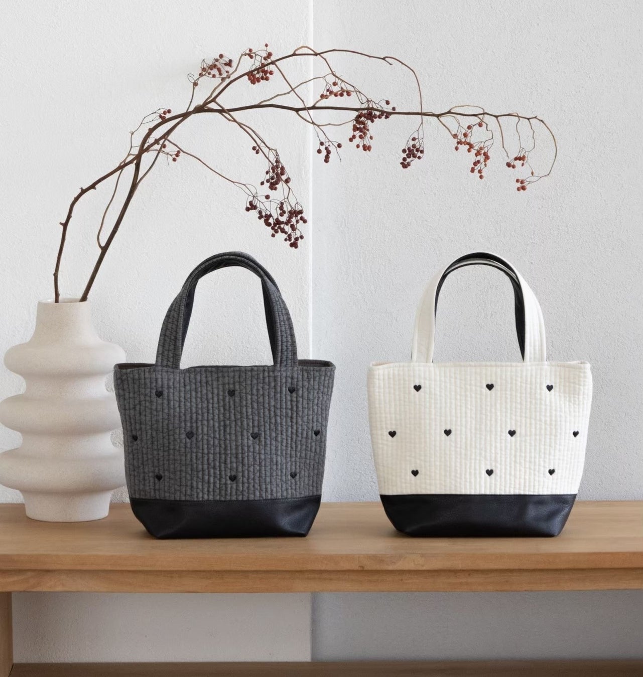 韓国のキルト生地を使った、デザインも実用性も抜群のヌビバッグを揃える[conforobe(コンフォローブ)]。スカラップデザインのヌビバッグは、サブバッグに活躍するA4サイズとミニバッグをご用意。また、ヌビ×フェイクレザーで高級感たっぷりの「Little Heart」は大人可愛いハート刺繍がポイント。