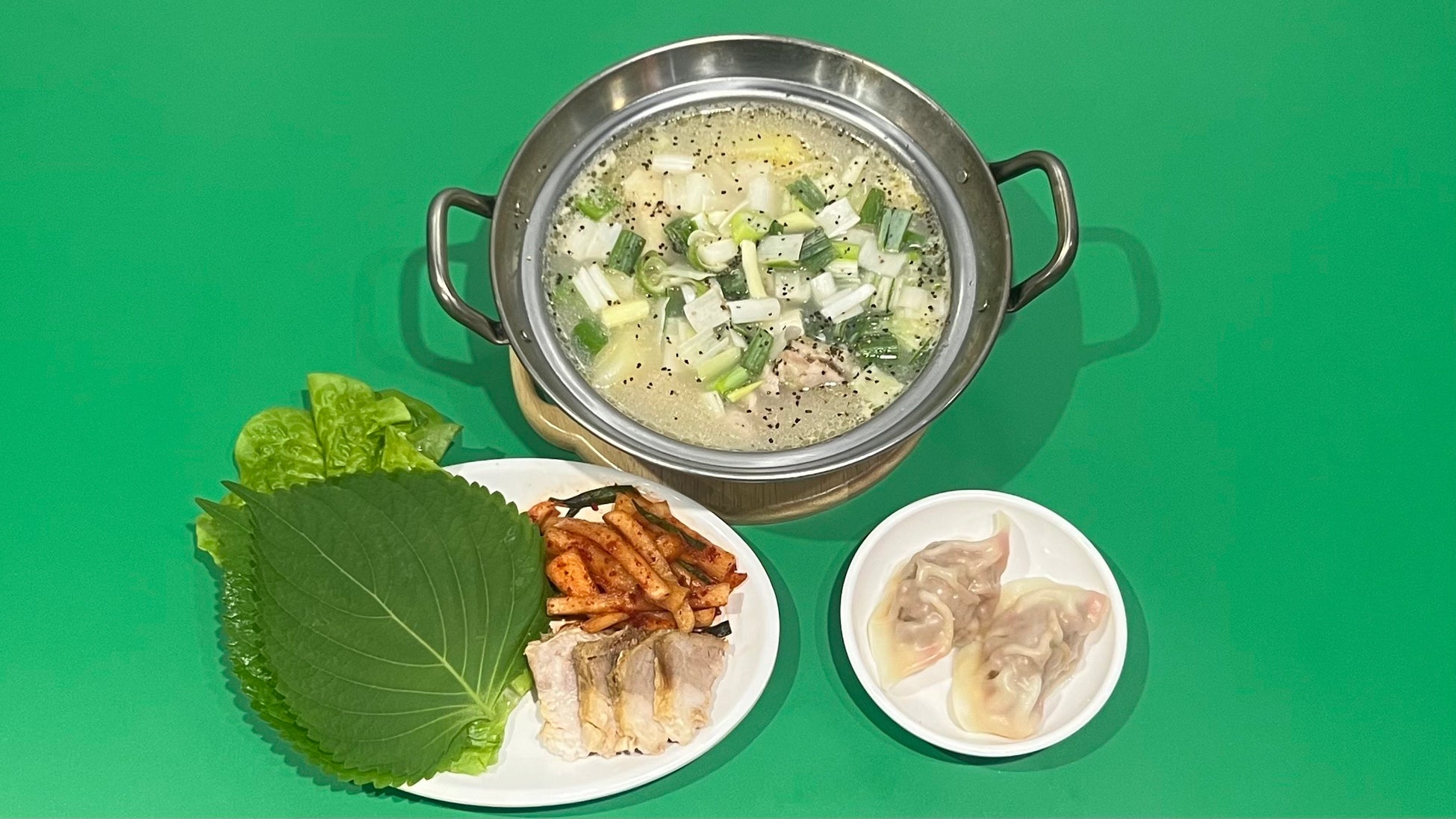 (タッカルクッス1人前・ポッサム肉4切れ・キムチマンドゥ2個)