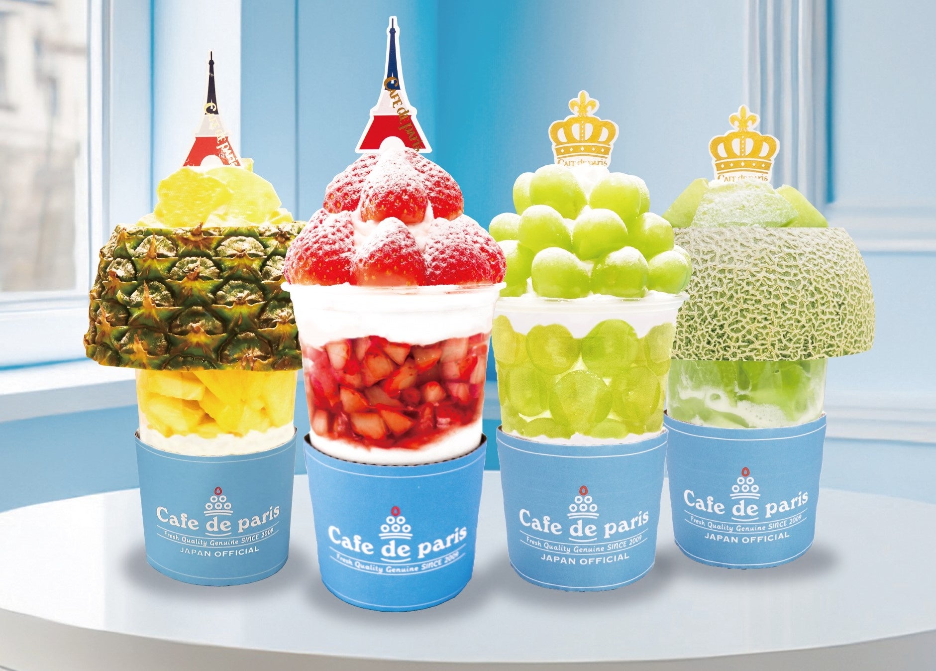 韓国の人気カフェ[カフェ ド パリ]。看板商品は、旬のフルーツを贅沢に使った「ボンボンパフェ」。SNS映えする美しい見た目をお楽しみください!