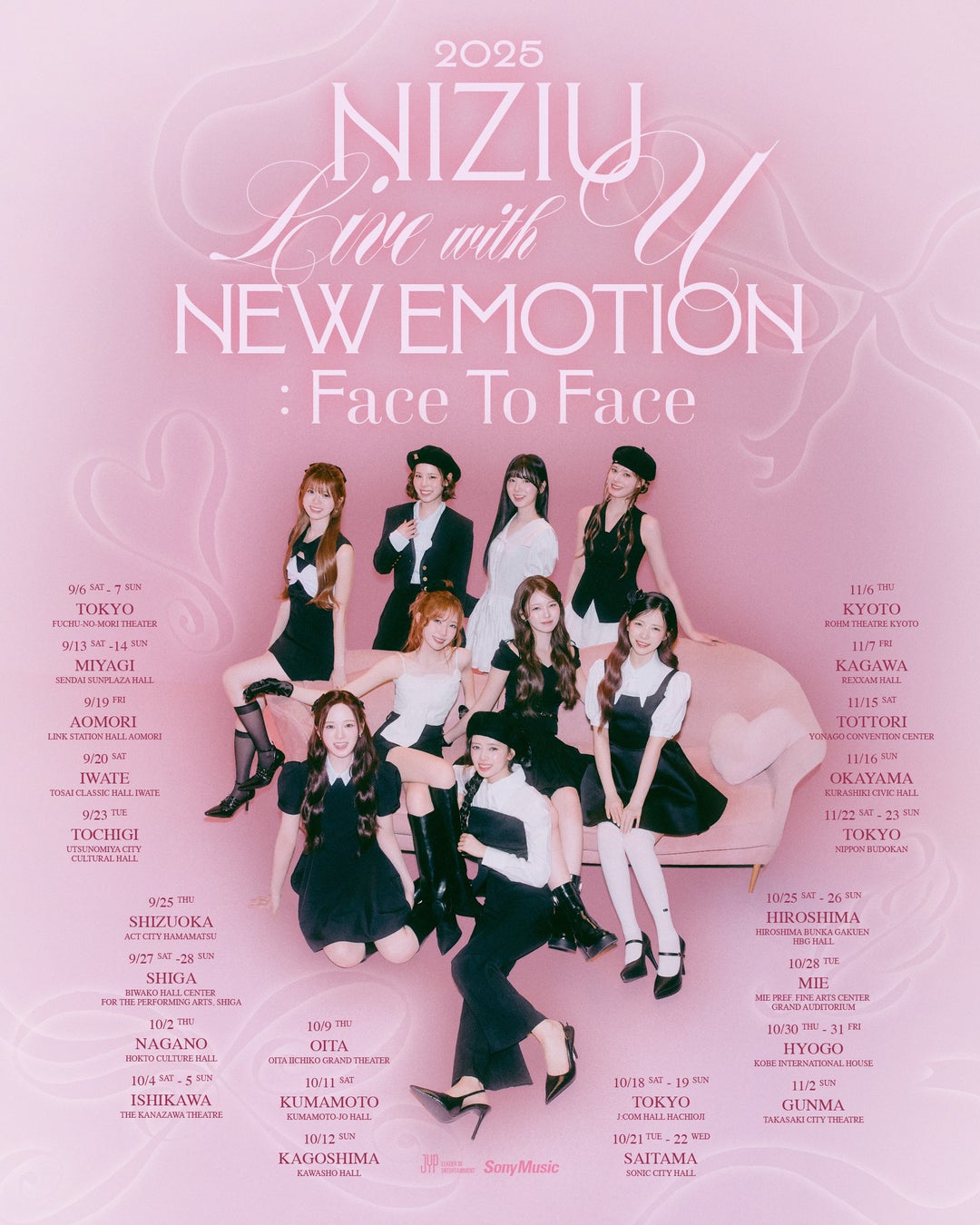 「NiziU Live with U 2025 ❝NEW EMOTION:Face To Face❞」は、NiziUが2020年に結成以来初のホールツアーで、2025年9月6日(土)からスタートしています。今回のツアーは全国21都市で32公演が行われ、NiziUにとって史上最多の公演数となります。