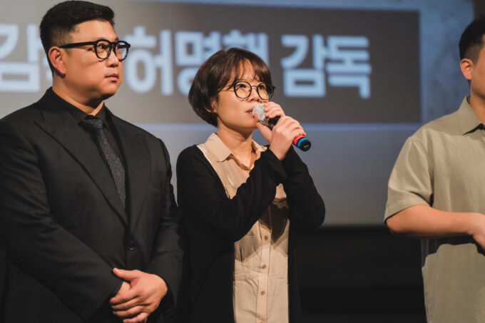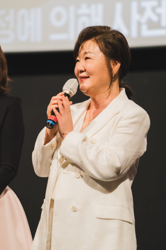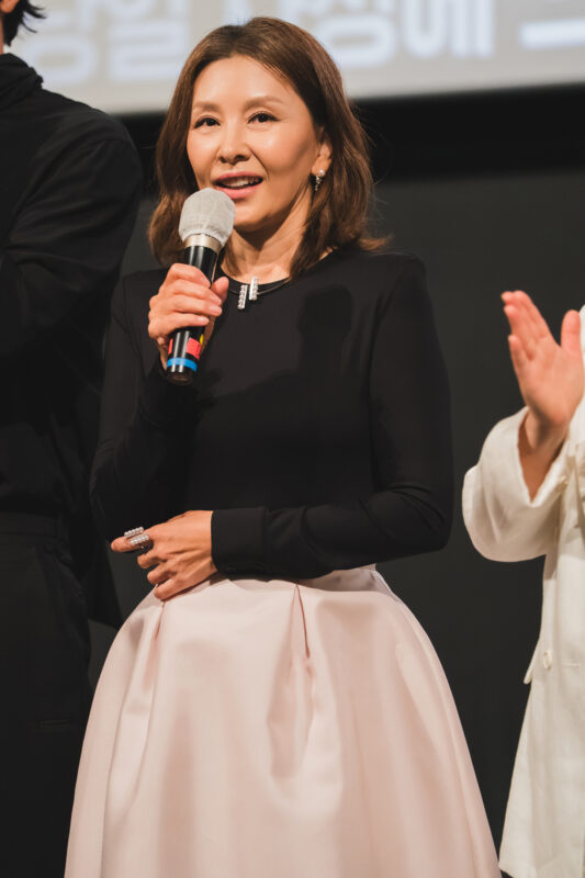 続いては、『北極星』をハングル 3 文字で表現するコーナー。それぞれ「도파민(ドーパミン)」(キム監督)「잼있다(おもしろい)」(ホ監督)「냥미침(オンリークレイジー)」(チュ・ジュニョク)「멋있다(かっこいい)」(イ・サンヒ)「복극성(北極星)」(キム・ヘスク)「중독성(中毒性)」(イ・ミスク)と答えていく中、カン・ドンウォンは、「전지현(チョン・ジヒョン)」と回答!チョン・ジヒョンは、「こう言われたら仕方がない」といった表情で、大きくため息をつきつつ「강동원(カン・ドンウォン)」とつぶやく茶目っ気を見せる場面も。またチョン・ジヒョンが「カン・ドンウォンさんとの共演は、待ちに待った機会でした。撮影の時もとても気分がよかったです」と好意を表すと、カン・ドンウォンはすかさず「出会ったからには、これからはしょっちゅう会わないといけないですね、僕たち」と優しく囁き、チョン・ジヒョンのみならず、会場にいた全女性をノックダウン。