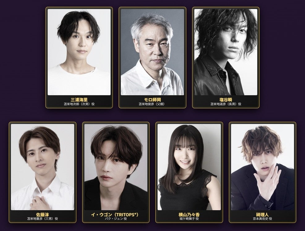 主演の次男苫米地次郎にハイパープロジェクション演劇『ハイキュー』シリーズ、舞台『ブルーロック』他、映画『ゲネプロ★7』では主演として好演の三浦海里、苫米地家の父苫米地俊彦には、言わずと知れた名バイプレイヤーとして数多くの作品に出演する他、ひとりコントや古典落語を現代に置き換えたサラリーマン落語をライフワークとして活動するモロ師岡、長男の苫米地道彦に、『忍風戦隊ハリケンジャー』でデビュー、映画『パッチギ!』にてアカデミー賞各賞を受賞し、日本映画・最多出演賞を受賞するなど第一線で活躍する他、国際支援活動やネパール親善大使も務める塩谷瞬が決定。三男の苫米地重彦には、『アイ★チュウ』シリーズや『MANKAI STAGE「A3」』シリーズ等舞台を中心に活躍する佐藤淳、さらに父の再婚相手となるパク・ジュンに抜群の歌唱力を誇るK-POPボーカルグループTRITOPS*のメンバーとしてライブ活動を精力的に行うほか、活劇「侍ガンバ」、舞台『Home』など日本でも数多くの舞台にも出演しているイ・ウゴン、謎のコンシェルジュ京本真佐史をミュージカル『テニスの王子様』、舞台『新選組始末記』、劇団『ハイキュー!!』など舞台の他、映画・ドラマ・ミュージカルなど様々に活動の幅を広げている碕理人、次郎の婚約者城ケ崎舞子には、舞台を中心に活動し、舞台『Fight!』では異なるプロデュースで主演し、高評を博すなど実力をみせる横山乃々香が出演。