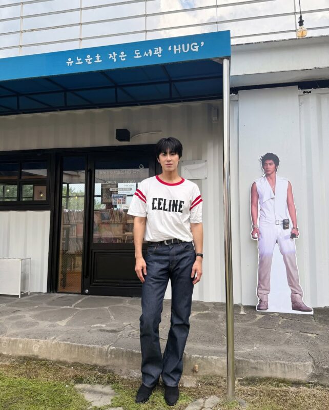 またユンホは、「ユンホの小さな図書館 HUGI」と書かれた建物の前に立って、こちらを訪れたことも知らせている。