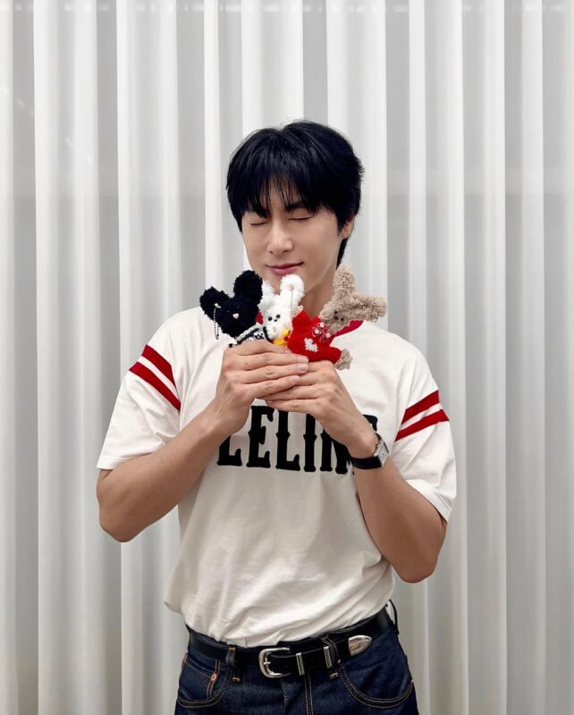 写真には、小さな動物の人形を手に持ってカメラを見ているユンホの姿が盛り込まれている。