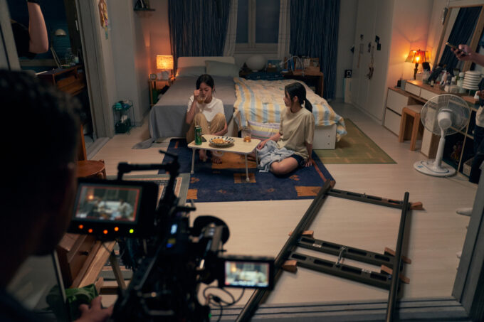 今回解禁されたのは、マイクを自ら持ち、スタッフとして撮影に参加するホン・ギョンや、国際手話の学校に通うヨルムのシーン、姉妹で晩酌をするシーンの裏側など、楽しく撮影に挑む三人の様子をとらえたメイキング写真3点。