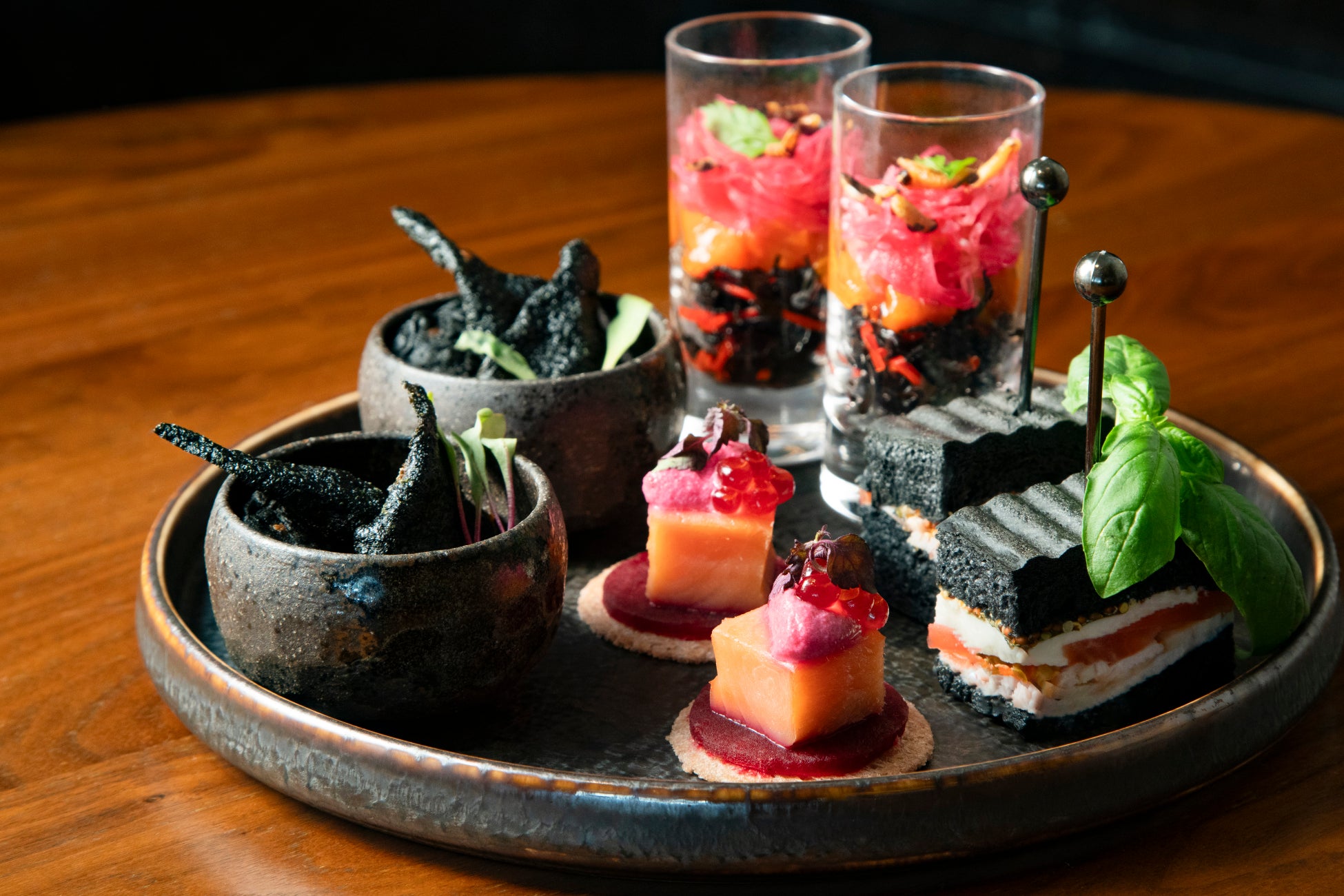 セイヴォリーでは、脂ののったサーモンにビーツの酸味を合わせた「スモークサーモンコンフィー ビーツのサワークリーム イクラ」、食感や風味の絶妙なコントラストが際立つ「マグロのタルタルとひじきのサラダ 紫キャベツ ワイルドライスパフ」など、ホテルならではの独創的なアイテムをご用意いたしました。