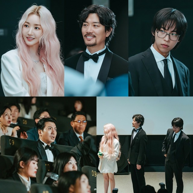 ドラマ「コンフィデンスマンKR」で、パク・ミニョン、パク・ヒスン、チュ・ジョンヒョクがパク・ミョンフンの映画投資家デビュー作「オマダム全盛時代」の試写会を開催する。