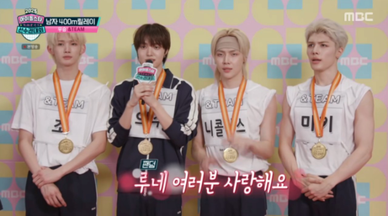 韓国で8日に放送されたMBCの「2025秋夕(チュソク、中秋節)特集 アイドルスター選手権大会」では、男子400mリレー決勝が行われました。