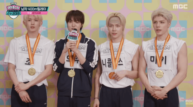 この日、男子400mリレー決勝戦には、予選を勝ち抜いた「&TEAM」、「Ampers&one」、「LUN8」、「KickFlip」が出場した。「&TEAM」のマキは「今回も『&TEAM』が絶対優勝するので見守ってほしい」と伝えた。