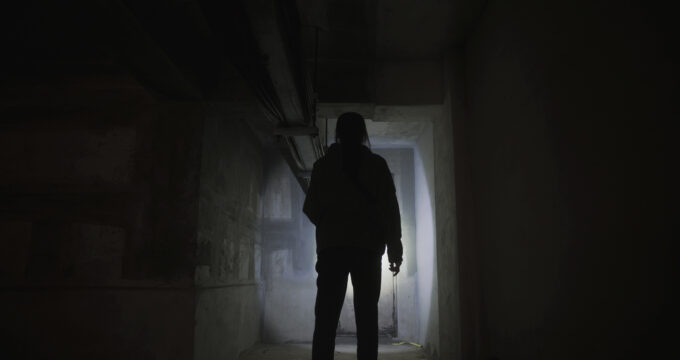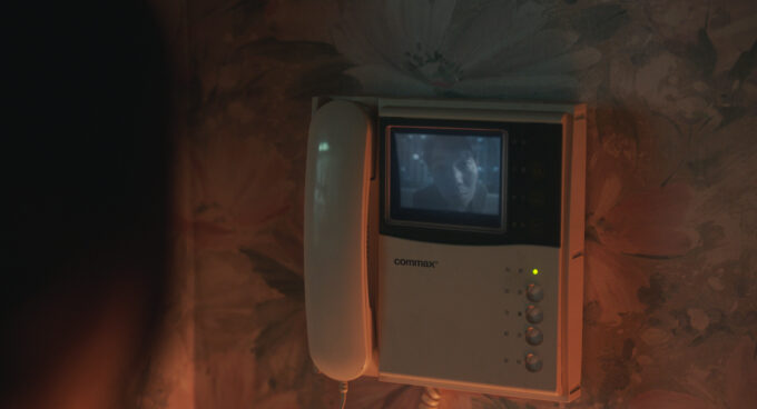 併せて届いたカットでは、これらの張り紙を作成した可能性が高いと思われる、504号室の住民男性の姿が確認出来る。真夜中にインターホンを鳴らして、604号室にいるソ・ジュヨンを訪問する不気味なシーンも捉えており、不適に笑う光景に寒気が襲ってくるはず。なんと彼は、包丁を手にしながら訪問している事が予告編で明らかとなっており、ジュヒの失踪に関わっている可能性も否定できない、究極に怪しい存在だ。